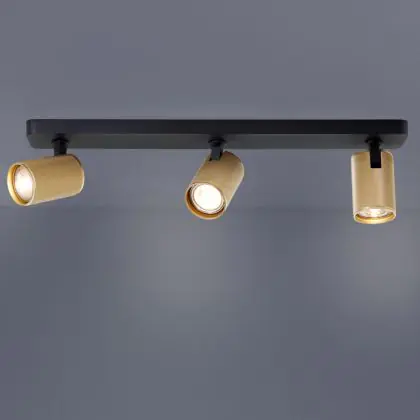 Beschrijving Brilliant Marty Plafondlamp Aluminium Zanderig Zwart Goud 15W 1050lm - 830 Warm Wit | Incl. 3x GU10