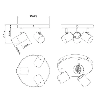| Fabrikantnaam | Trop Sopt Light, 3*GU10,D23*2.5cm Metal, sandy black | |