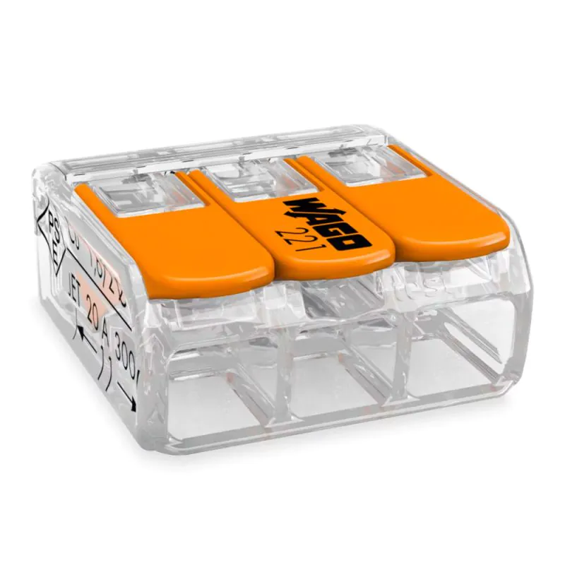 Lampdirect tip: in plaats van een kroonsteentje kun je ook een WAGO verbindingsklem gebruiken. Hiermee kun je snel en eenvoudig een draad verbinden, met name dankzij de oranje lasklemmen. Door deze simpelweg dicht te klikken blijven alle draden stevig op hun plek in de klem zitten. Klik hier om een WAGO klem te bestellen bij Lampdirect.