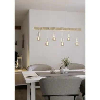 Eglo Hanglamp Townshend Staal Wit Hout | IP20 - Geschikt voor 6x E27