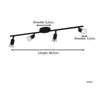Beschrijving Eglo Plafondlamp Buzz-LED Staal Zwart 4x2.8W 4x250lm - 830 Warm Wit | IP20 - Incl. 4x GU10