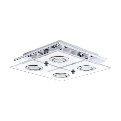 Eglo Plafondlamp Cabo Roestvrij Staal Chroom 4x2.8W 4x250lm - 830 Warm Wit | IP20 - Incl. 4x GU10