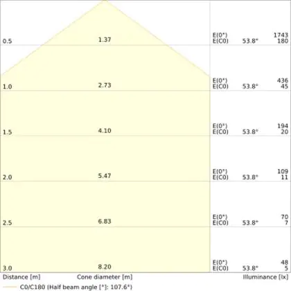 De lichtopbrengst (Lumen), geeft weer hoe krachtig het uitgestraalde licht is. Dit is belangrijk om te weten om de juiste sfeer te creëren. 0 tot 400 Lumen is bij uitstek geschikt voor accent- of sfeerverlichting. Een hoger aantal Lumen is, afhankelijk van de grootte van de ruimte, beter geschikt als ondersteunende- of basisverlichting. Heb je plafonds hoger dan 4 meter, dan is een lichtopbrengst van minimaal 8000lm aan te raden indien heldere verliching gewenst is (vb. in werkomgevingen).