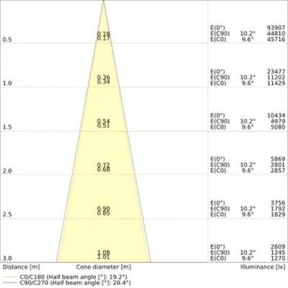 De gradenbundel geeft informatie over hoe breed het licht wordt uitgestraald. Dit zit tussen de 0 en 360 graden (D). Hoe kleiner de hoek, hoe specifieker de lichtbundel is. Over het algemeen is een smalle gradenbundel perfect voor sfeer- of accentverlichting, terwijl een brede gradenbundel ideaal is om grote oppervlaktes te verlichten.