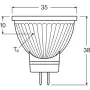 Beschrijving Ledvance Performance LED Spot Reflector GU4 MR11 2.8W 184lm 36D - 927 Zeer Warm Wit | Beste Kleurweergave - Dimbaar - Vervangt 20W