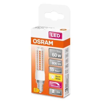 Beschrijving Osram Special T Slim LED E14 Helder 6.5W 806lm - 827 Zeer Warm Wit | Dimbaar - Vervangt 60W