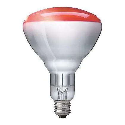 Deze gloeilamp van Philips is een infraroodlamp. De infrarode straling van deze lamp is voor het blote oog niet te zien maar levert warm licht op. Infrarood wordt voor verschillende doeleinden gebruikt. Onder andere in een spot.