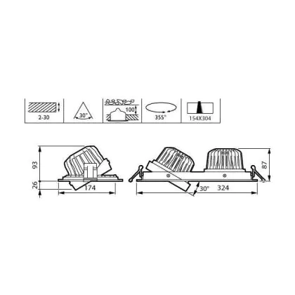 Beschrijving Philips LED Spot Greenspace Accent Gridlight Aluminium Zwart 62W 4000lm 120D - 830 Warm Wit | 154mm - IP20 - Interact Dimbaar